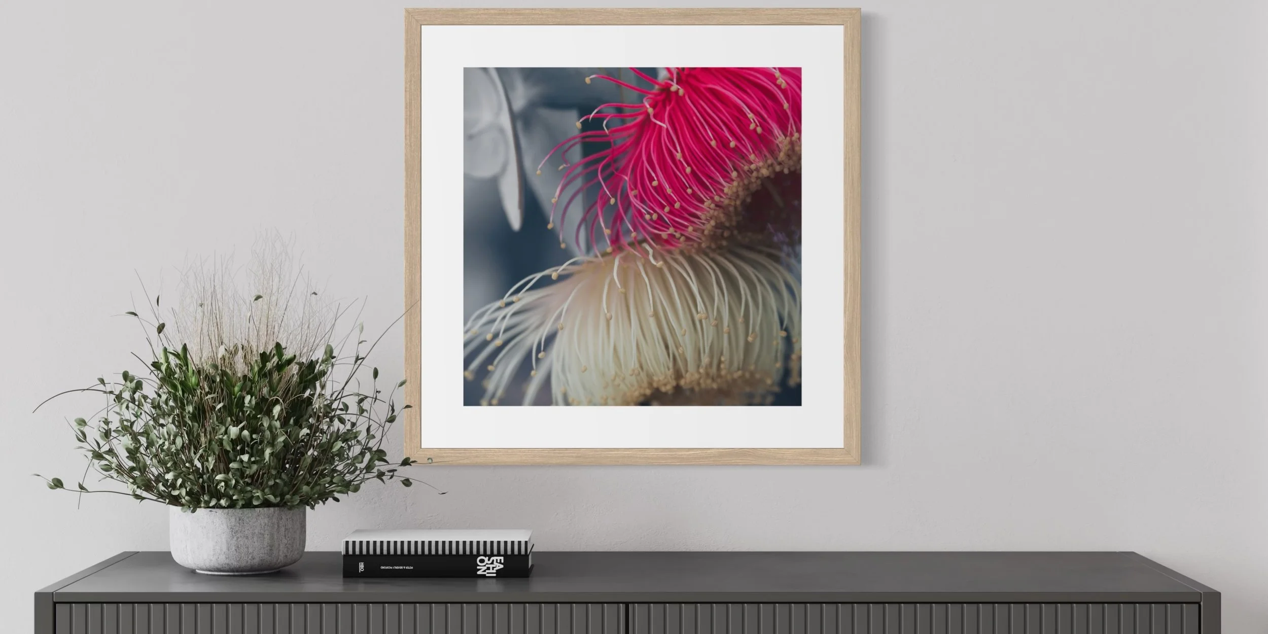 Eucalyptus rhodantha, also known as the Rose Mallee, is one of Western Australia’s most striking native species. This collection presents eight botanical studies exploring its sculptural red blooms, silver foliage, and geometric form. Photographed in natural light and printed on archival matte paper.